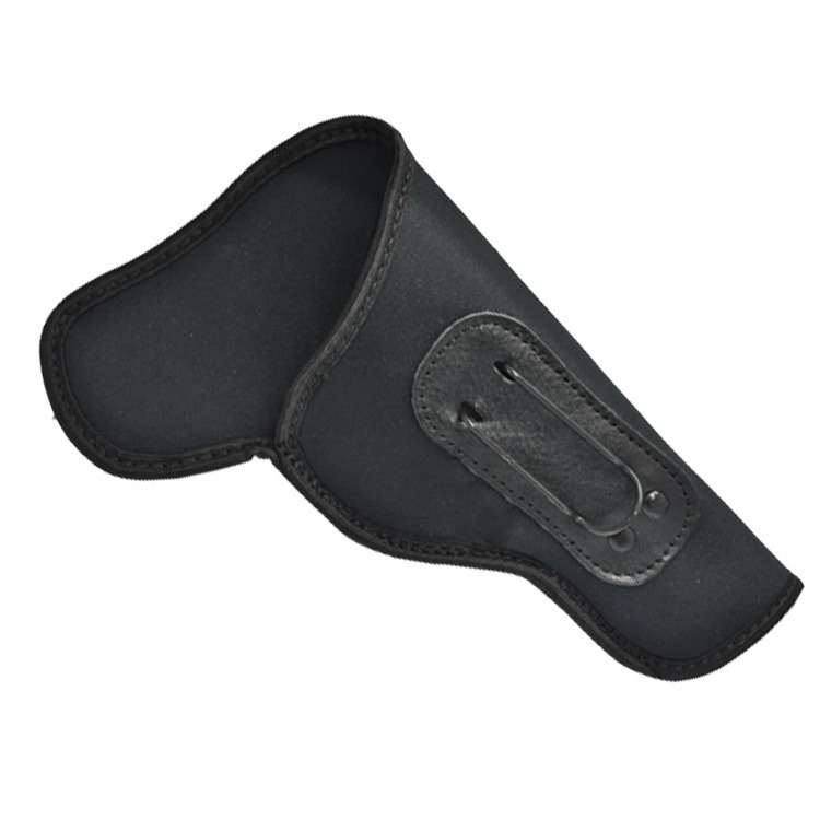 Fabricado em Neoprene de alta resistência e elasticidade, o coldre se adapta ao corpo e ao formato da arma, proporcionando ajuste seguro e confortável mesmo em uso prolongado. A fixação é feita por meio de gancho, garantindo estabilidade no porte interno e facilitando o posicionamento discreto.