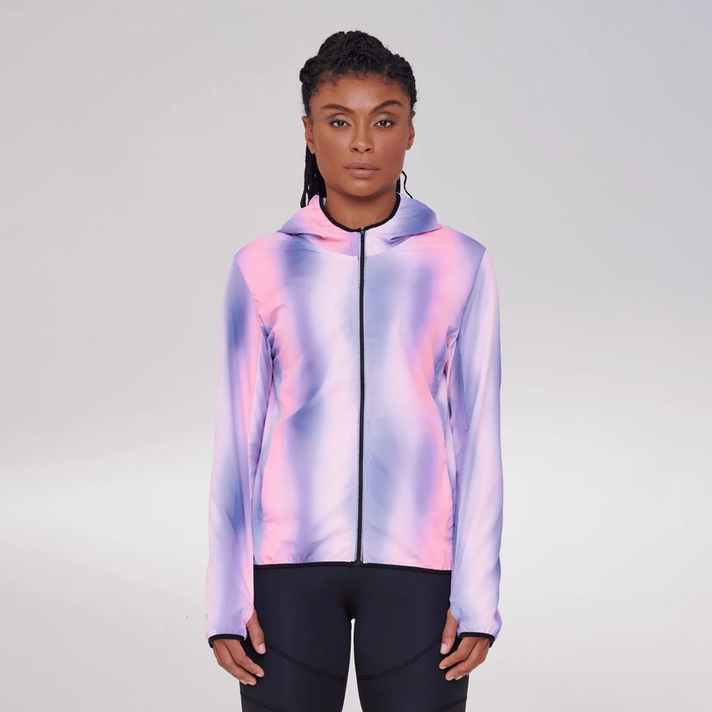 A jaqueta esportiva Performance Layer Print Primavera Verão 2024, possui bolsos nas duas laterais e capuz, além de zíper frontal e elástico na barra para manter a peça sempre no lugar .